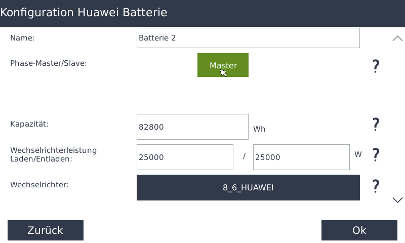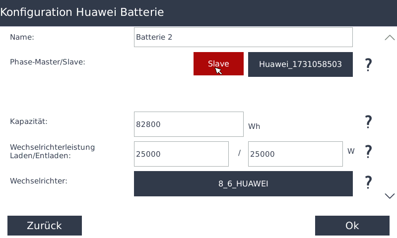 Wenn Sie mehrere BatteriesystemeHierfür gehenGehen Sie unter Batterienaufzudieder Batterie, die Sie als Slave festlegenwollenmöchten.(beimBeim Einbindender Batterie,wirddiesedie erste Batterie automatisch als Masterangelegt).angelegt