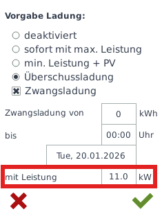 - Zwangsladung von (Eingabe der Energie in kWh)