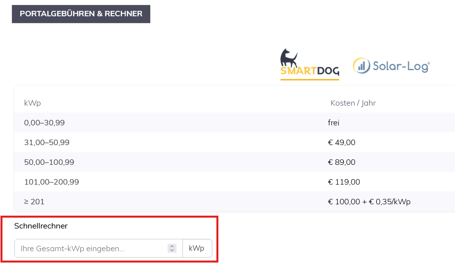 - Über den Schnellrechner können Sie die Kosten für Anlagen mit mehr als 201 kWp bequem berechnen lassen