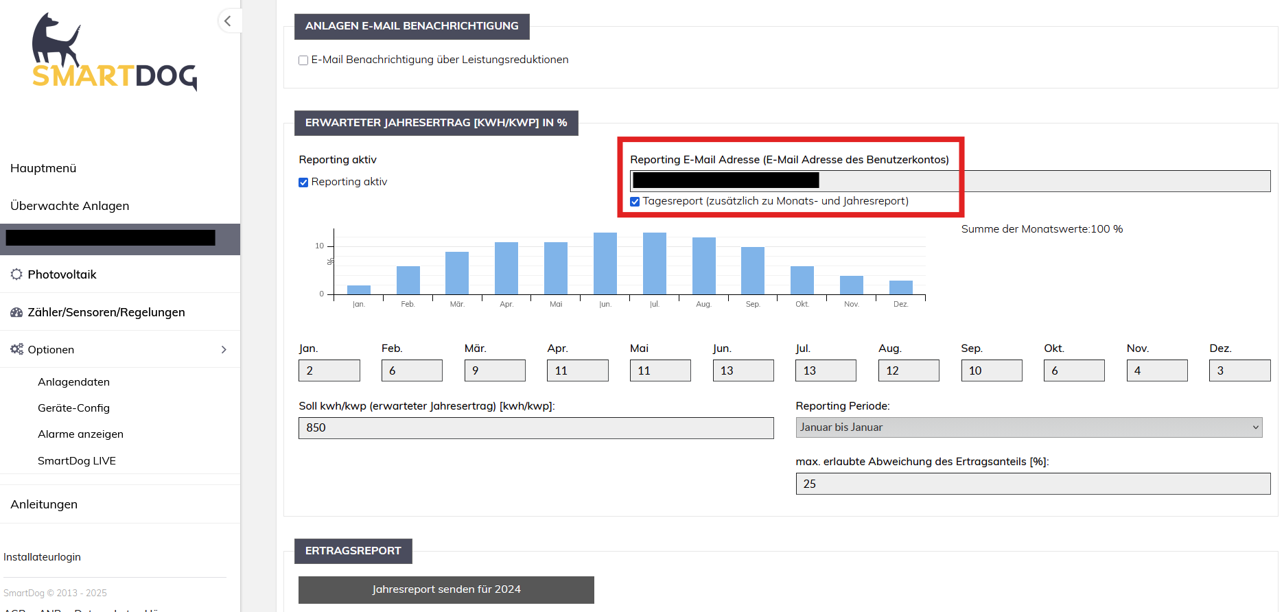 Danach werden die Reporting-E-Mails des SmartDogs auch an diese zusätzlichen E-Mail-Adressen versendet