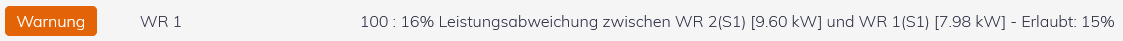 - Zwischen den angegebenen Wechselrichtern besteht eine Ertragsabweichung, die den zulässigen hinterlegten Grenzwert von überschreitet