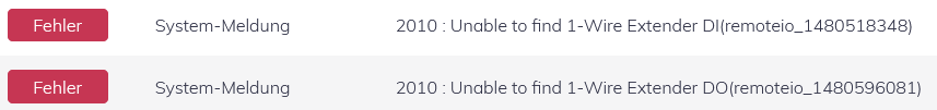 • Erweiterungseinheit/One Wire nicht angeschlossen, nicht erreichbar oder nicht korrekt konfiguriert