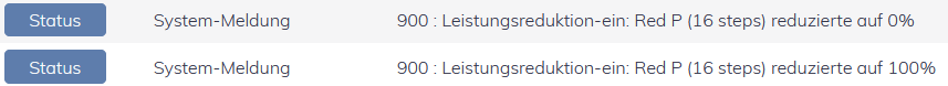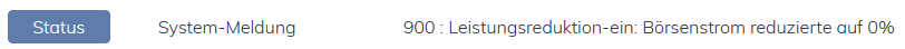 - Der Netzbetreiber hat die Anlage über den 16-Stufen-Baustein (FRE) auf 0 % Leistung reduziert / auf 100 % Leistung erhöht