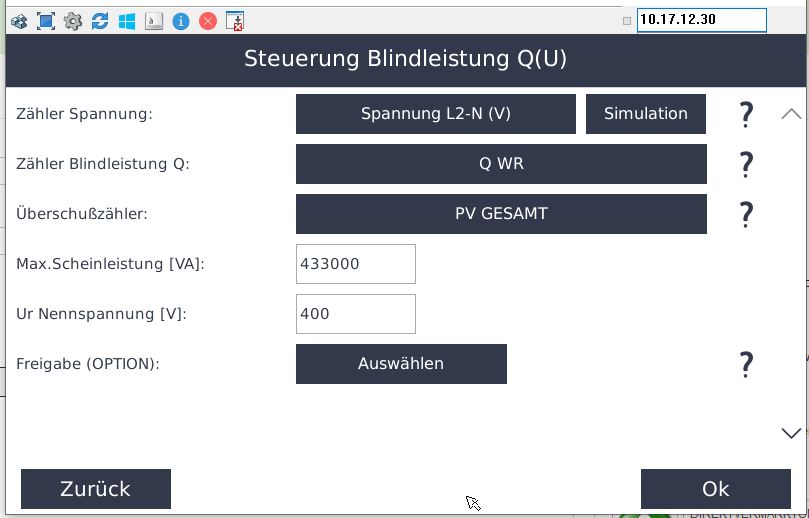 - Es muss die Q(U) (TOR-Austria-Niederspannung) ausgewählt werden