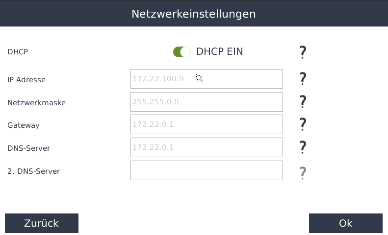 - Folgende Parameter können nur eingestellt werden, wenn kein DHCP verwendet wird: