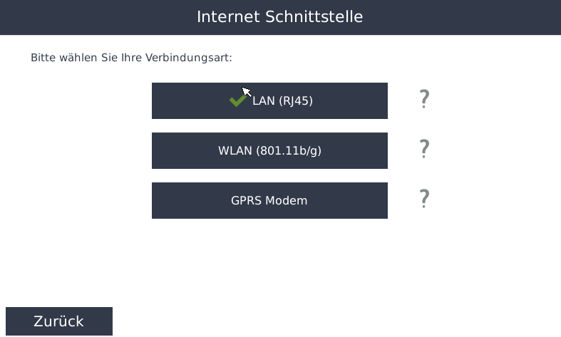 Wählen Sie im Online Modus die Internetverbindung, die Sie verwenden möchten: