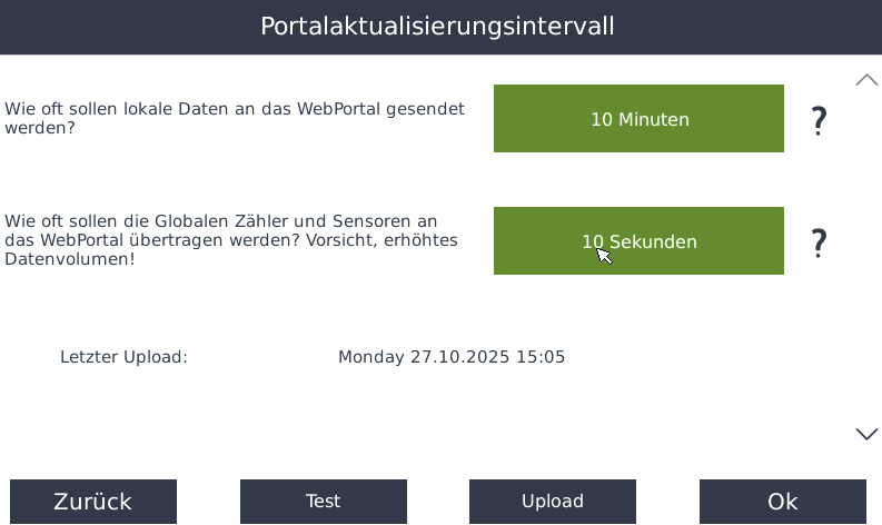 - Stellen Sie ein, wie oft die Daten vom Gerät an das Portal gesendet werden sollen: