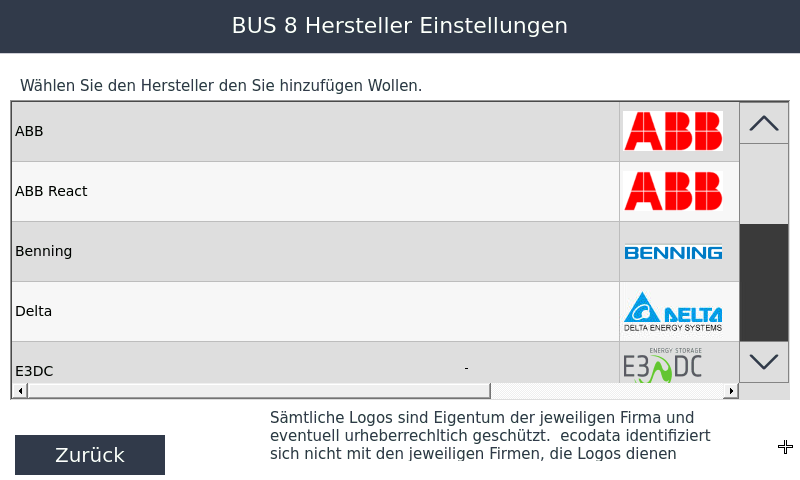 - Wählen Sie den Wechselrichterhersteller aus, der am gewählten Bus angeschlossen ist