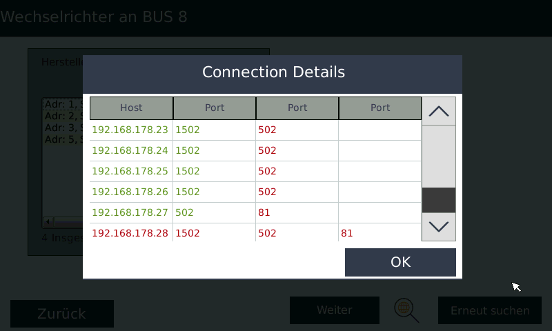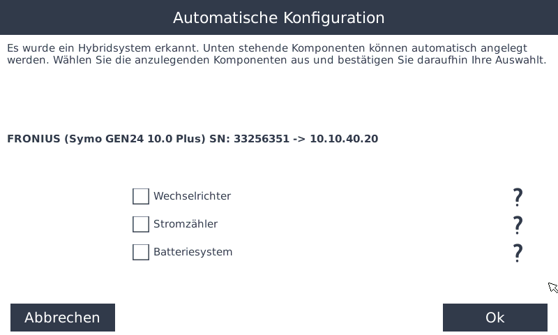 - Es öffnet sich ein Bestätigungsfenster mit den gefundenen Wechselrichtern
