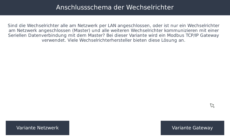 - Wählen Sie in diesem Fall die Variante Gateway, wenn mehrere Geräte angeschlossen sind oder der Wechselrichter nicht die Unit-ID 1 verwendet