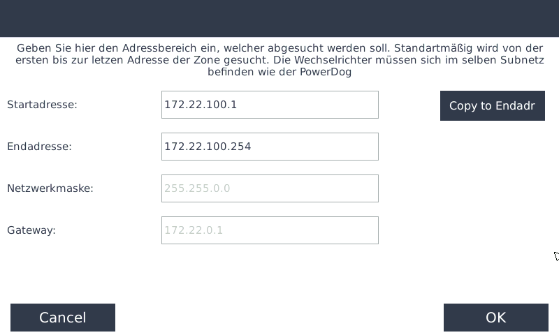 - Mit dem Button Copy to Endadr können Sie die obere IP-Adresse bequem in das untere Feld übernehmen