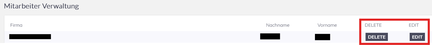 - Mit DELETE können Sie den Mitarbeiter löschen, unter EDIT können Sie die Rechte des Mitarbeiters verändern