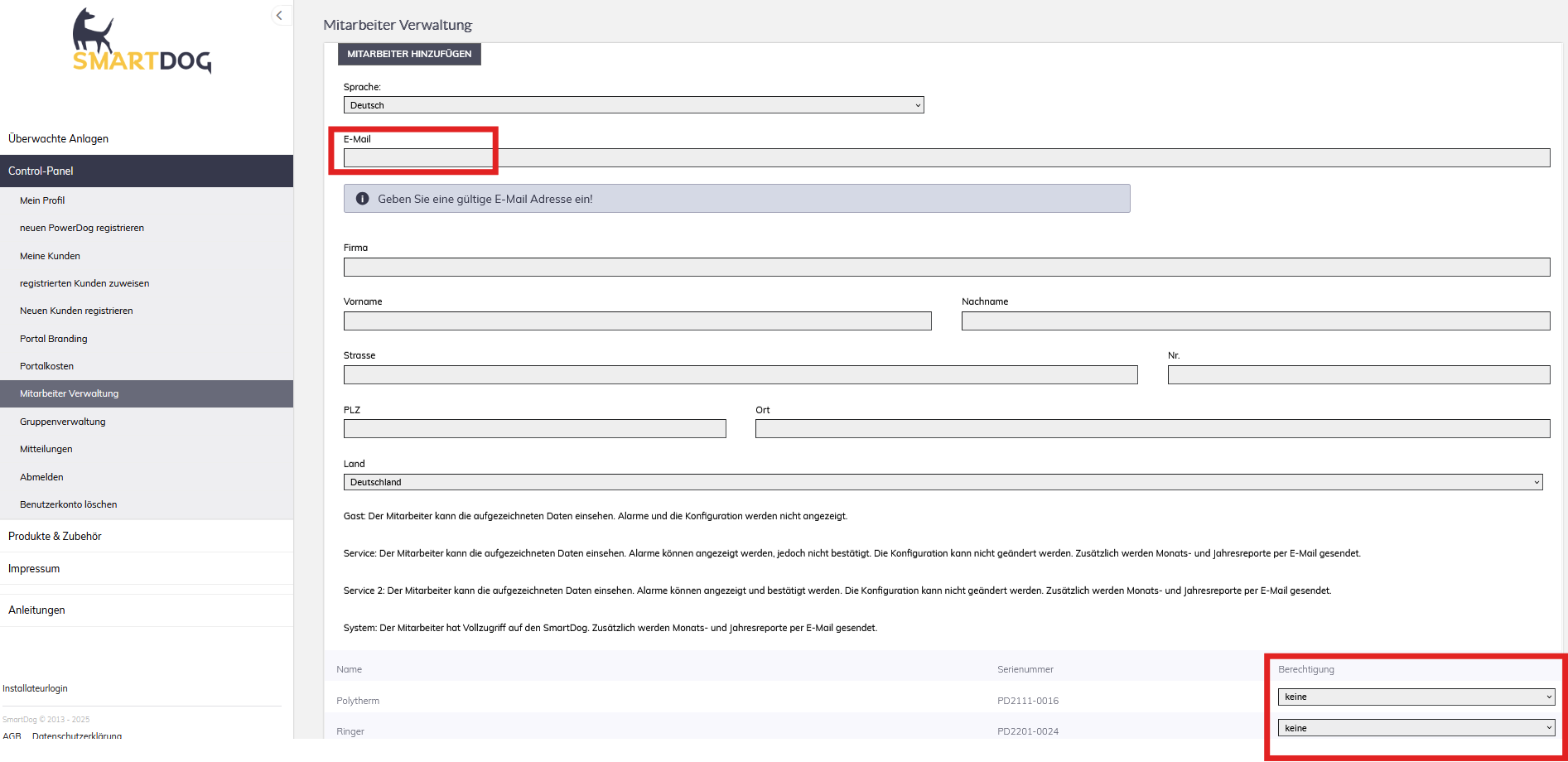 - Geben Sie die E-Mail-Adresse Ihres Monteures ein