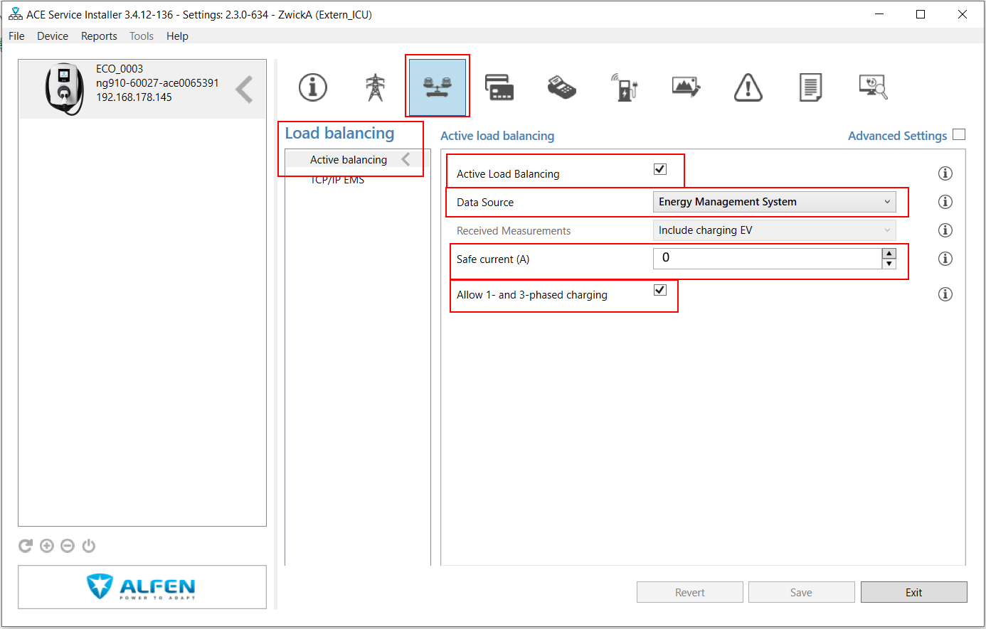 - Hacken bei Active Load Balancing setzen und Data Source auf Energy Management System ändern