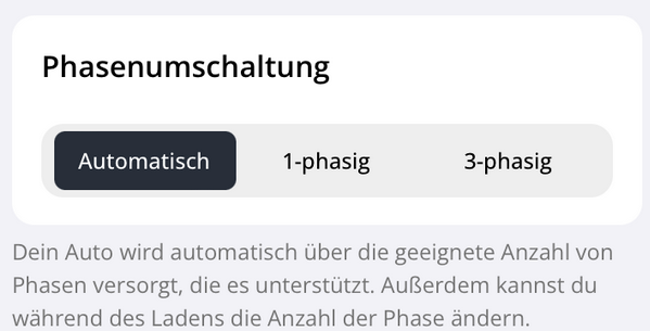 - die Phasenumschaltung kann nur über die App eingestellt werden
