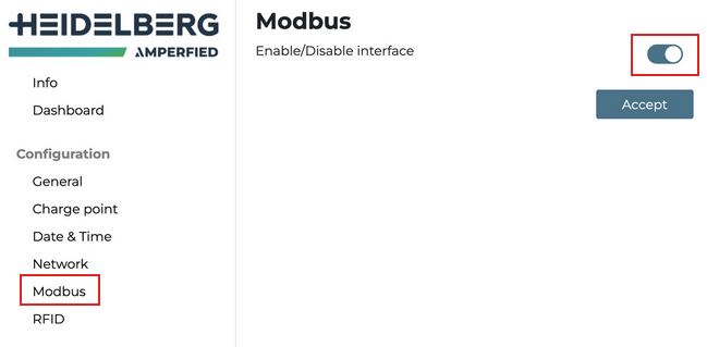 - aktivieren Sie in der Ebene Modbus die Modbus-Schnittstelle