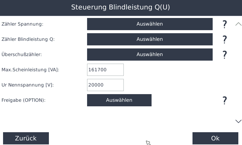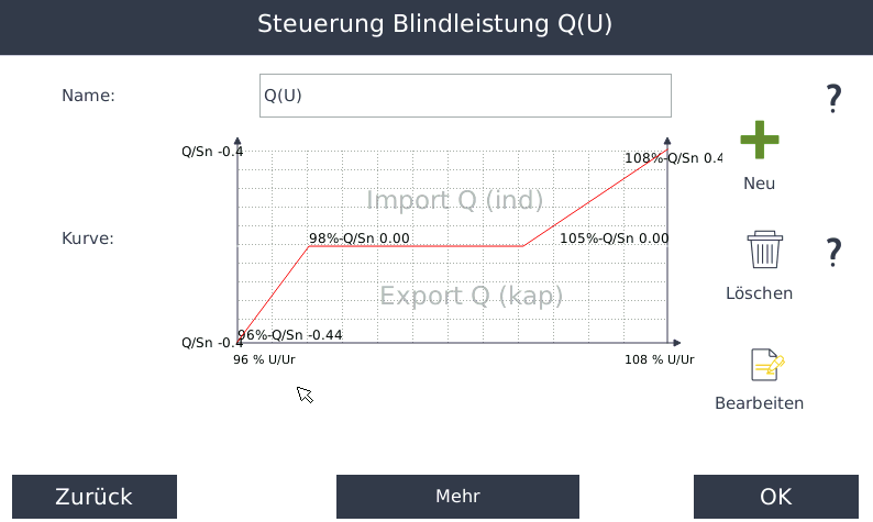 - Wählen Sie Q(U) Blindleistungsregelung per Kurve