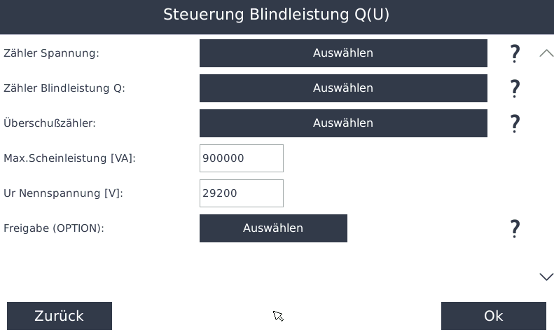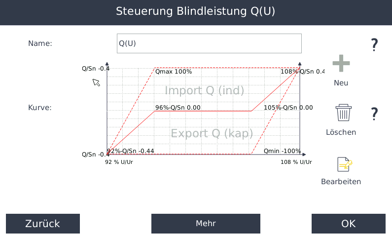 - Wählen Sie Q(U) Blindleistungsregelung per Kurve (Tor-Austria-Mittelspannung)