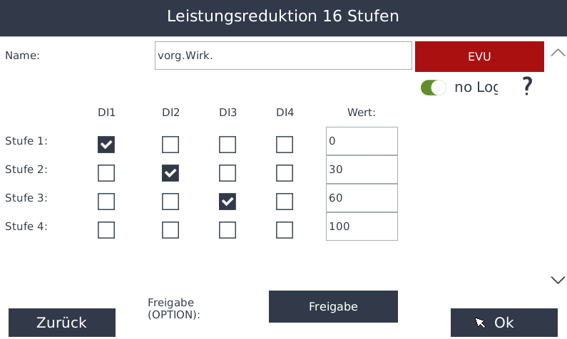 Hier können Sie nun die Wirkleistung entsprechend der Digitaleingänge reduzieren
