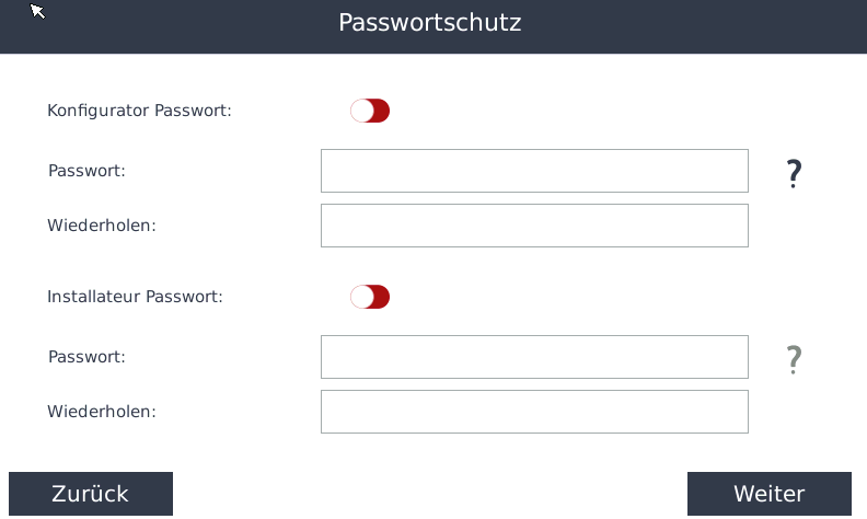 Hier können Sie ein Passwort für den Zugang zum Konfigurator festlegen, um unerwünschte Änderungen an der Konfiguration zu verhindern