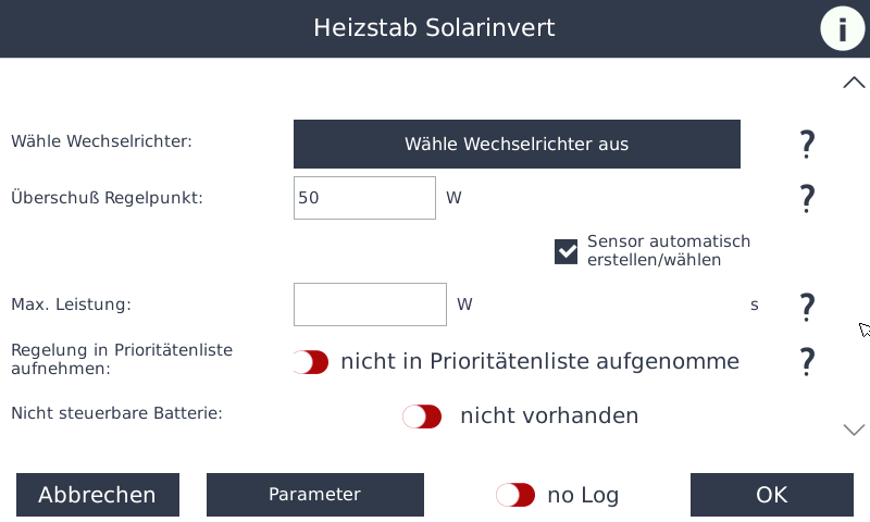 • Wählen Sie hier die Wechselrichter aus, welche für den Heizstab berücksichtigt werden sollen