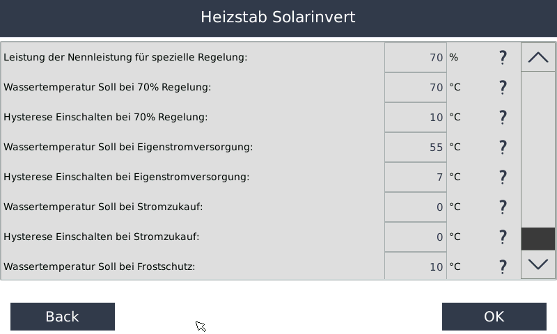 • Wählen Sie die Regelung Heizstab Solarinvert