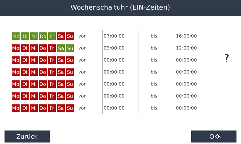 • Hier können Sie definieren, zu welchen Zeiten geheizt werden darf