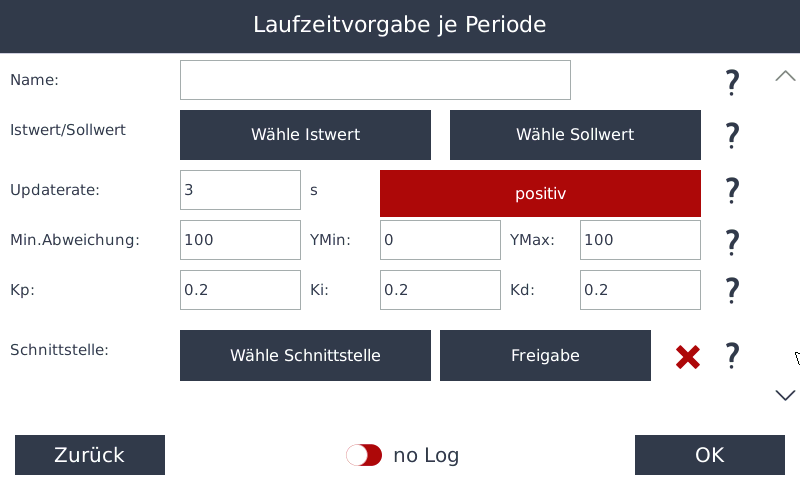 - Hier geben Sie die Regelrichtung vor