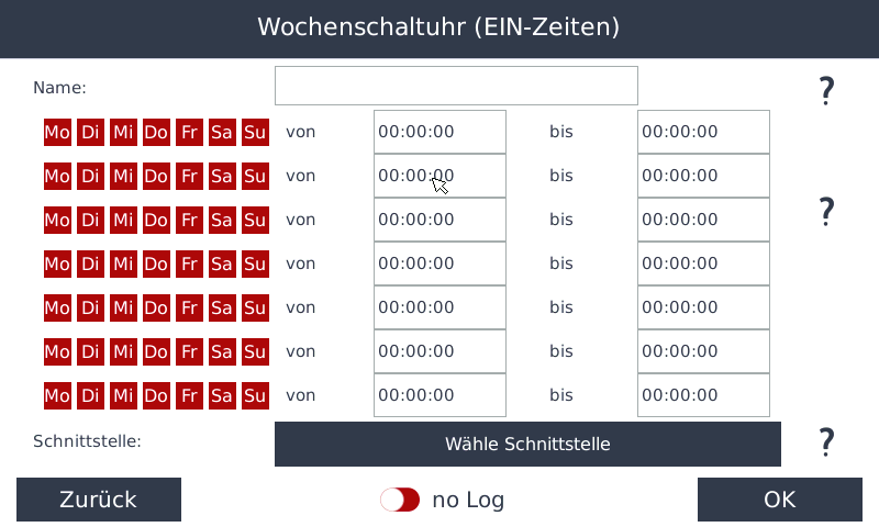 - Hinterlegen Sie für die einzelnen Wochentage von Montag bis Sonntag die gewünschten Schaltzeiten