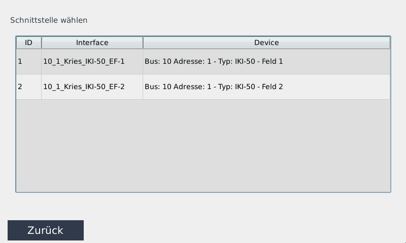Es können sowohl Geräte vom Typ IKI-50_1F mit einem Eingangsfeld als auch Geräte vom Typ IKI-50_2F mit zwei Eingangsfeldern eingebunden werden.