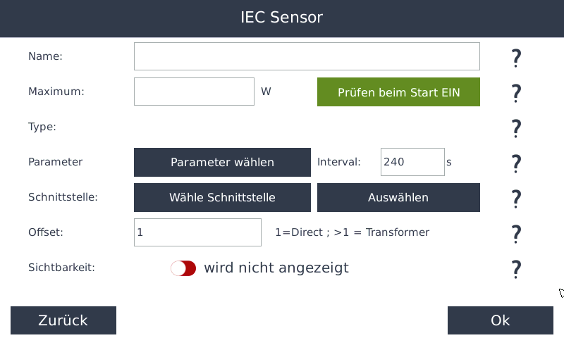- Wählen Sie anschließend einen der beiden IEC-Sensortypen aus: Electric Counter D0 oder Heatmeter D0