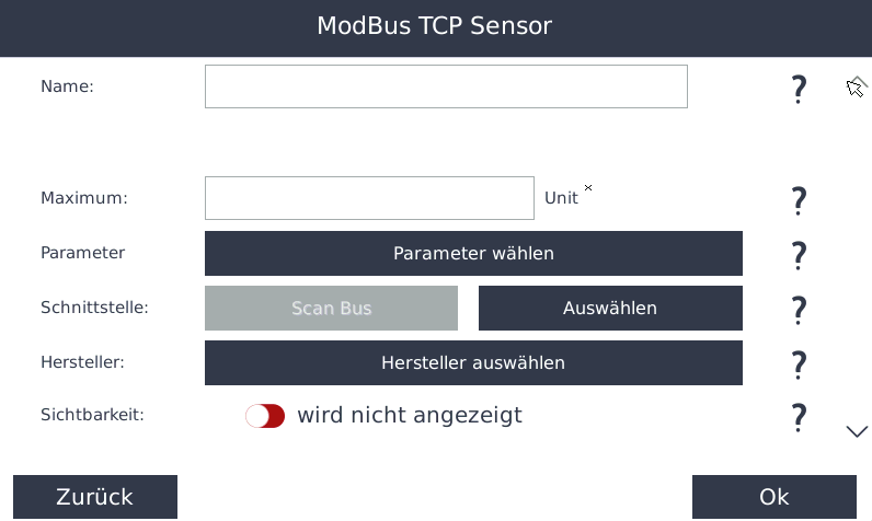 - Legen Sie fest, ob der Sensorwert auf dem Display sichtbar sein soll