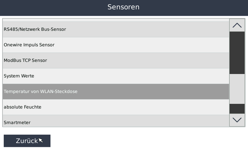• Dann gelangen Sie zur vollständigen Sensorenliste