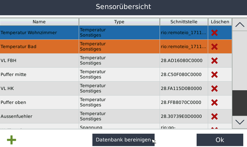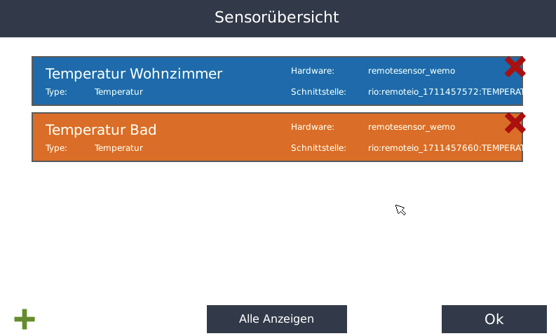 • Mit dem Grünen Plus können Sie einen neuen Sensor anlegen