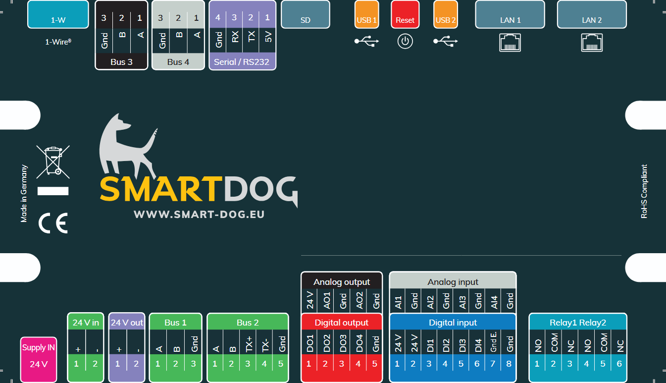 Ansicht von innen (Anschlussraum) SmartDog Rev. PI4.0