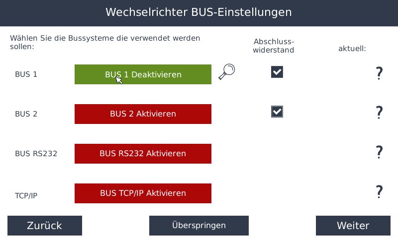 Aktivieren Sie anschließend BUS 1 oder BUS 2 (RS422), je nachdem, welcher Bus verwendet werden soll