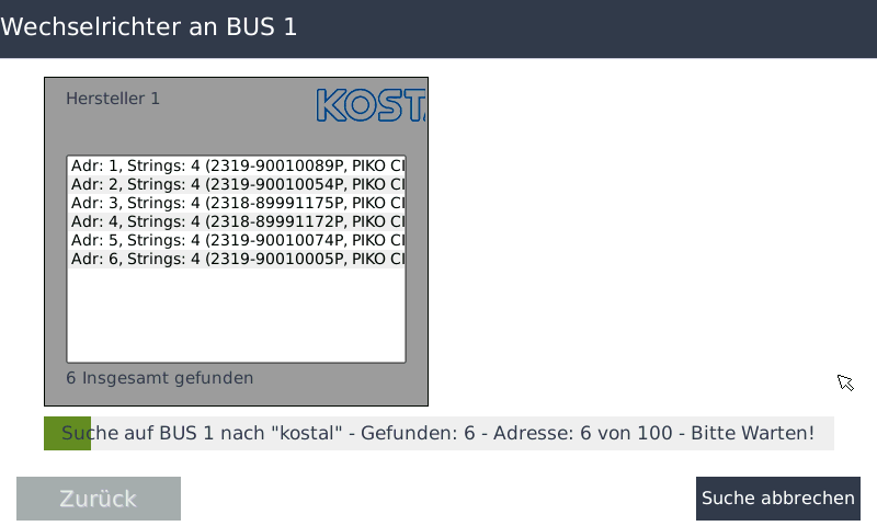 Wenn alle Wechselrichter gefunden wurden, können Sie auf Abbrechen klicken, um die Suche zu beenden