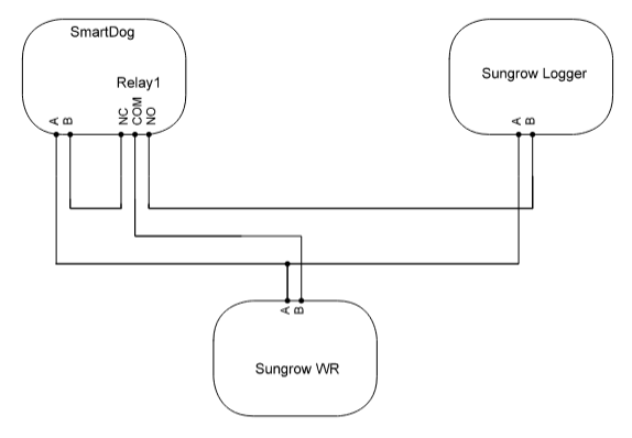 Die BUS-Leitung muss sowohl am SmartDog als auch am SmartLogger über ein Relais von SmartDog realisiert werden
