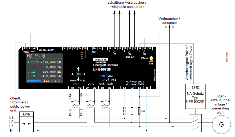 Anschlussplan Pav,e komplette Abschaltung über NA-Schutz: