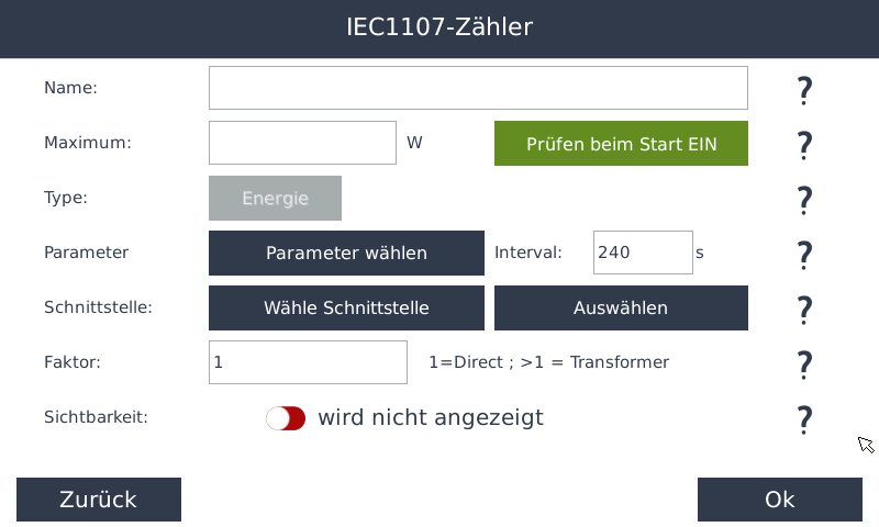 - Max. 4 Zähler sichtbar, ansonsten müssen Sie einen anderen Zähler auf nicht sichtbar setzen
