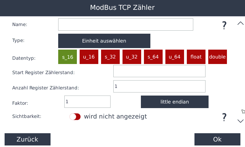 • Legen Sie den Datentyp des Registers für den Zählerstand fest