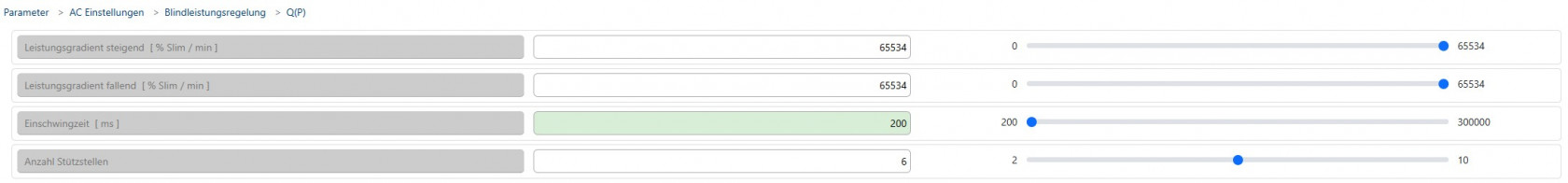 - Hier können Sie bestimmen, wie schnell die Wirkleistung steigt oder fällt